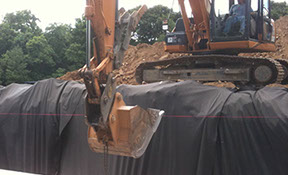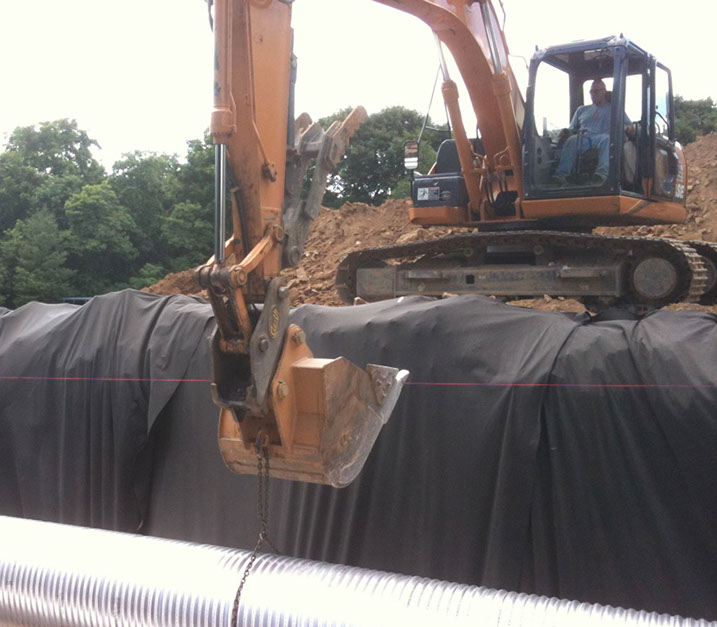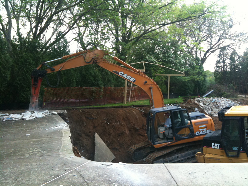We provided pool demolition, excavation, filling and compaction to remove the existing, aging pool and prepare the site for a much more modern pool design. We demolished, removed, and recycled over 220 tons of concrete. All of the new pool area and decking required a significantly sized storm water infiltration bed which we installed downhill of the new pool area.